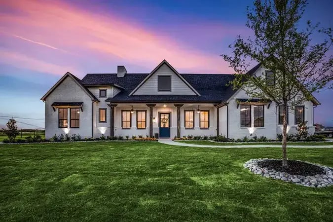 The Preston is an architectural masterpiece of 3,549 sq. ft. offering 5 bedrooms, 4 full baths, and a 3-car garage. A breathtaking foyer with soaring ceilings and elegant oak beams welcomes you into an open-concept area combining the family room, gourmet kitchen, and casual dining space. The luxurious first-floor master suite is a private retreat, featuring its own oak beams and a spa-like bath with a free-standing tub and designer shower. Upstairs, generously sized bedrooms, a spacious game room, and a fifth bedroom with an en-suite bath create a perfect haven for family. An outdoor oasis with a built-in grill and granite countertops completes this stunning home, which masterfully blends dramatic design with everyday functionality.