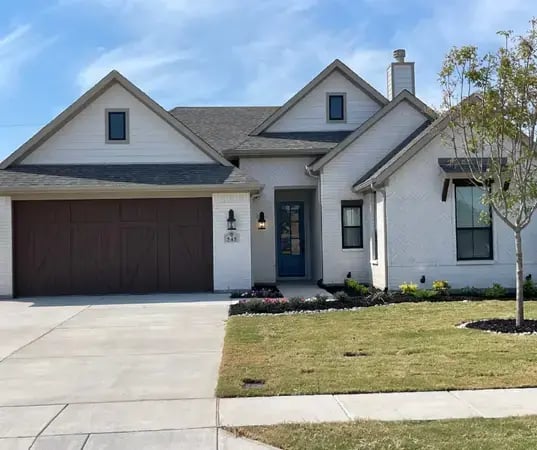 Discover the perfect combination of charm and modern living with The Trinity floor plan. Spanning an impressive 3,549 square feet, this home is designed with a modern farmhouse aesthetic and a layout that is both captivating and functional. The Trinity is a home where every detail is considered to create a welcoming and open atmosphere. The heart of the home is an expansive, open-concept space that seamlessly combines the kitchen, dining area, and family room. This space is filled with an abundance of natural light, making it the perfect setting for both everyday life and entertaining guests. A covered patio extends the living area outdoors, providing a great space for al fresco dining and relaxation. This home is designed for comfort and privacy, offering 5 bedrooms, 4 full bathrooms, and a 3-car garage. The master suite is a private retreat, located at the rear of the house. It features a luxurious bathroom and a sizable walk-in closet, providing a peaceful escape at the end of the day. The home also includes a convenient utility room adjacent to the master suite, and two additional bedrooms that share a Jack & Jill bath, ensuring a functional layout for the entire family. Whether you are a young family starting out or a couple looking to downsize without compromising on style, The Trinity offers a single-story living experience that is both sophisticated and serene. Every aspect of this home, from its elegant design to its thoughtful features, is crafted to provide a truly exceptional living experience.
